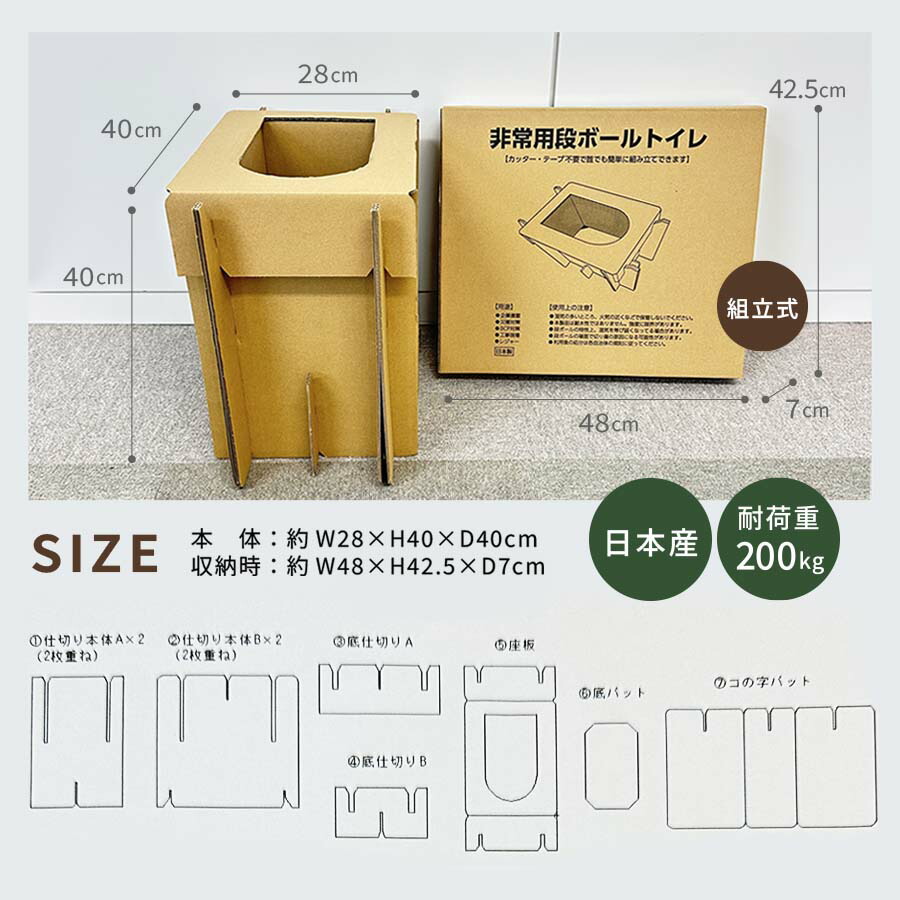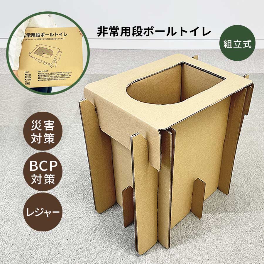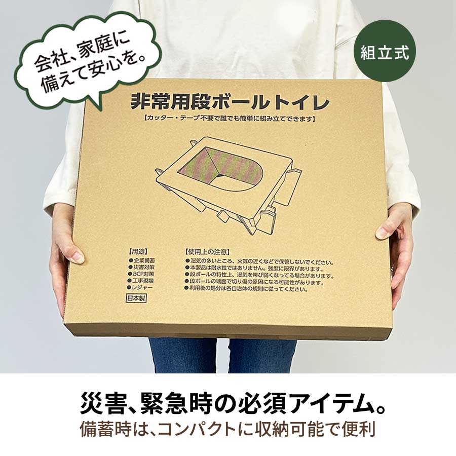 非常用段ボールトイレ 防災トイレ 簡易トイレ 携帯組み立て式 防災用品 グッズ 災害用 非常用 断水 停電 台風 緊急時 折りたたみ 軽量 日本製 00013