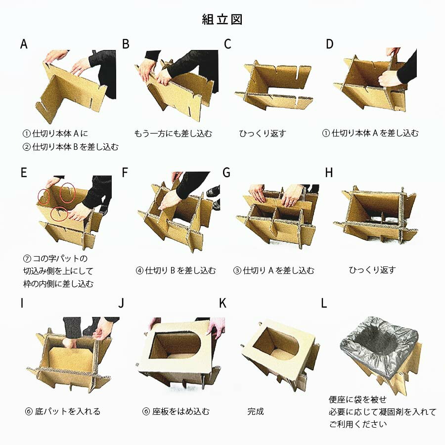 耐荷重200kgの丈夫な段ボール製簡易トイレ。
