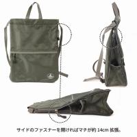 | 仕 様 | | | ・外側:ファスナーポケット×1・マチ幅拡張機能を搭載。サイドのファスナーを開ければ約14cm拡がります。・内生地の色は全色グレー。※本製品は縫製品のため、完全防水ではございません。縫い目等から水がしみ込む事がありますのでご注意ください。 | |