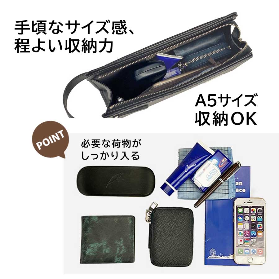 鞄の街、豊岡の熟練職人が一つ一つ丁寧に仕上げた、セカンドバッグ。
