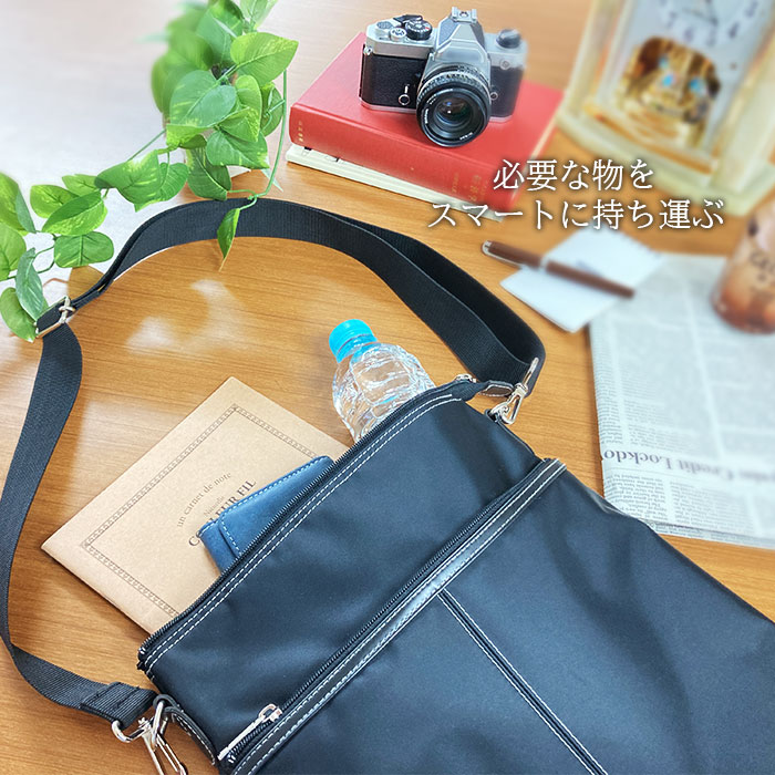 摩耗や摩擦に強い高密度ナイロンを使用したショルダーバッグ。