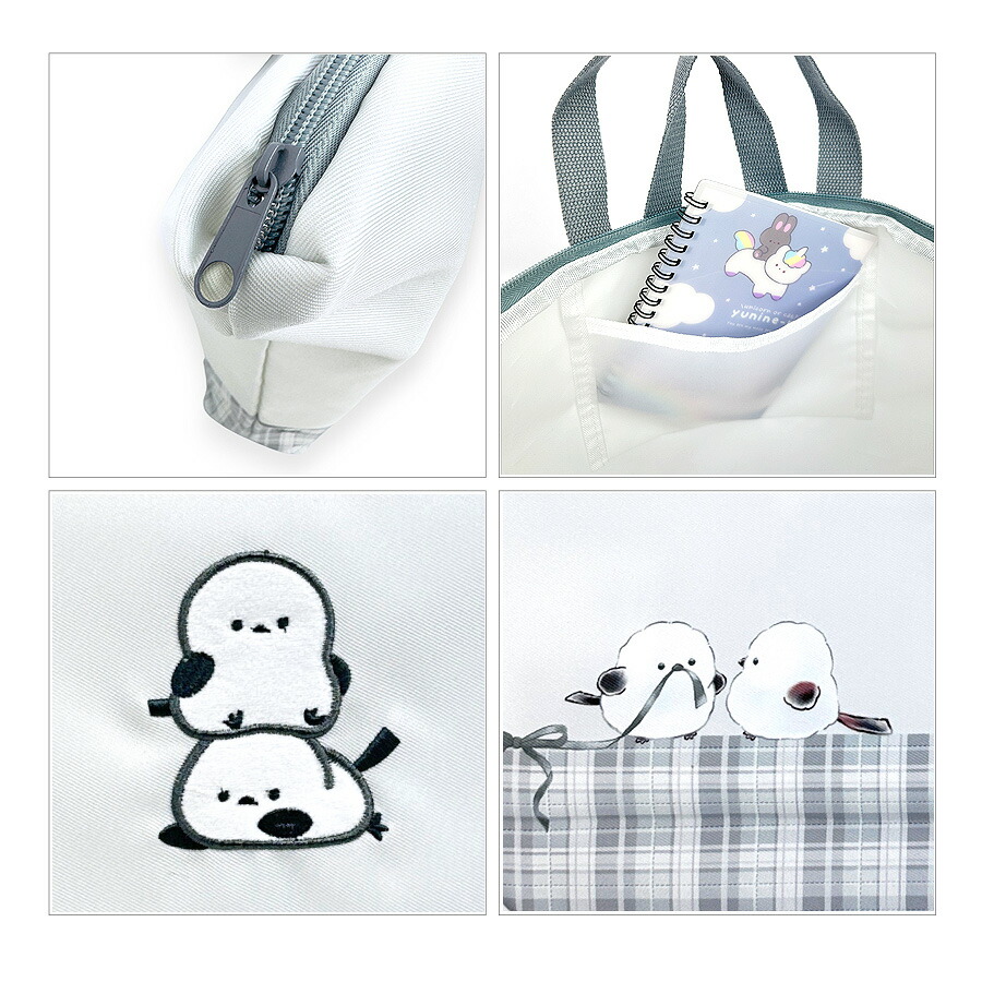 [イメージ・関連] おしゃれ オシャレ お洒落 かわいい 使いやすい 便利 人気 売れ筋 おすすめ 流行 カジュアル / ファスナー しまたろず、シマエナガ グレー チェック柄 ブラック 黒 大人っぽい シンプル りぼん リボン ファー チャーム マスコット 軽量ネームタグ B4対応 お名前記入欄 ネーム記入欄
