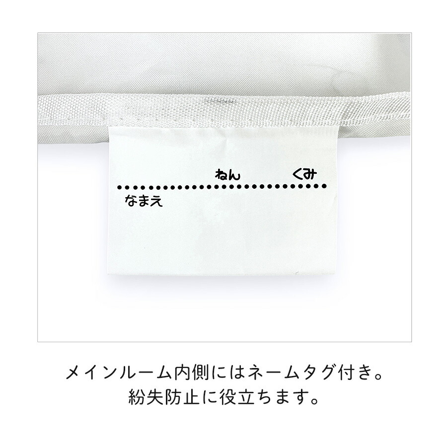 内側にはネームタグが付いており、紛失防止に役立ちます。