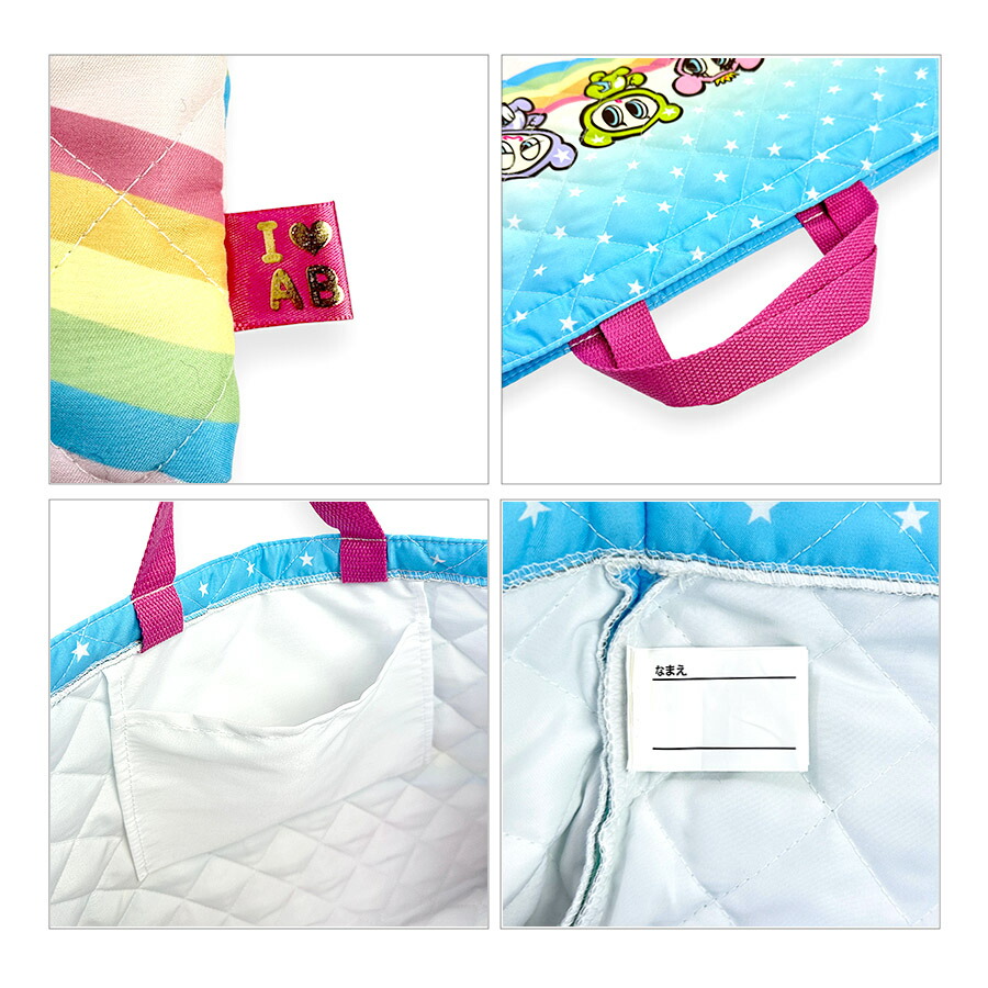 [イメージ・関連] おしゃれ オシャレ お洒落 かわいい 可愛い キュート ガーリー 使いやすい 便利 人気 売れ筋 おすすめ 流行 カジュアル girl / Angel Blue ナカムラくん ナカムラ 中村くん レトロ ポップ カラフル 虹 レインボー 青 ブルー 水色 ピンク 桃 キャラクター エンジェルブルー 総柄 ネームタグ付き キルト 軽量 軽い 入園 入学 新学期 キュート しっかりした 丈夫 トート お道具入れ A4対応 B4対応