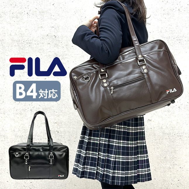 人気スポーツブランドFILAの合皮スクールバッグ。