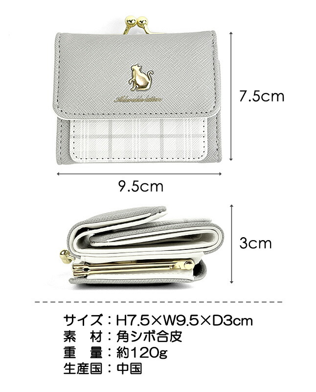 | イメージ 関連 | | | かわいい おしゃれ キュート 大人っぽい オトナ女子 ミニ財布 三つ折り財布 コンパクト財布 キッズ財布 がま口 ネコ 猫 ねこ キャット チェック ブラック グレー アイボリー クロ 黒 | |