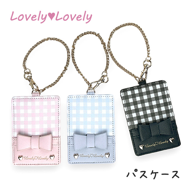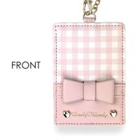 ガーリーなギンガムチェック柄、立体的な大きめリボンとハートのパーツが可愛いパスケース。