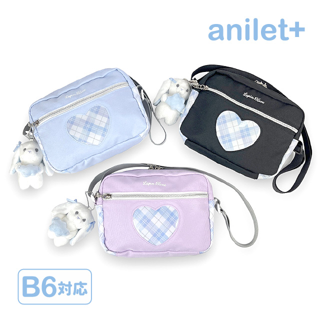 天使の羽がかわいいたれ耳うさぎのマスコット付きヨコ型ショルダーバッグ。