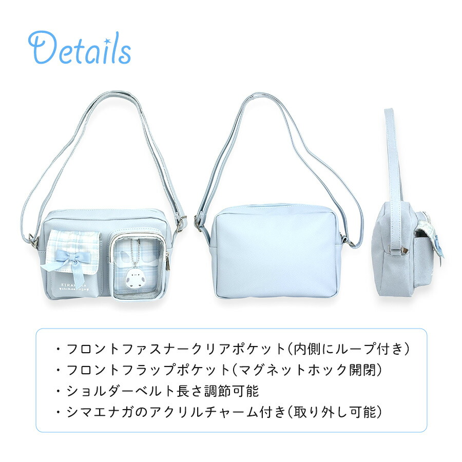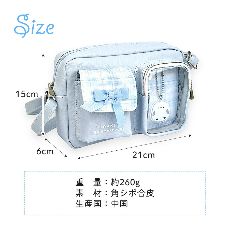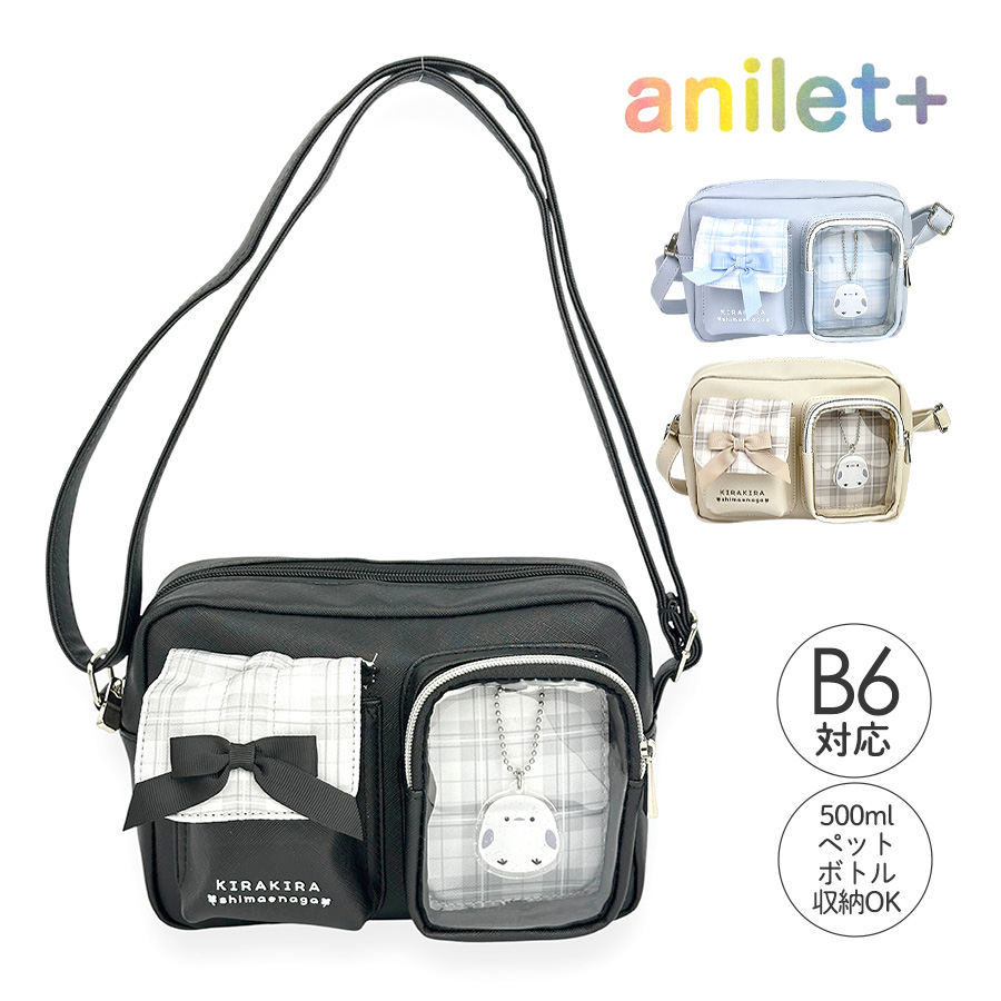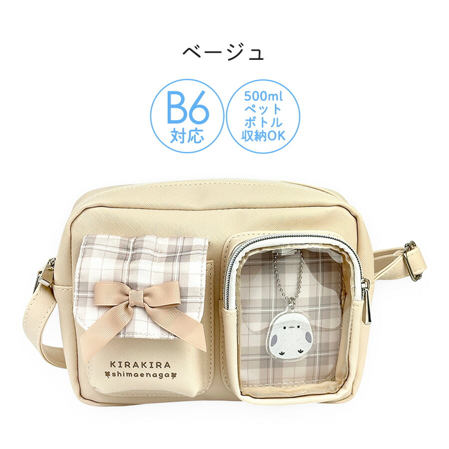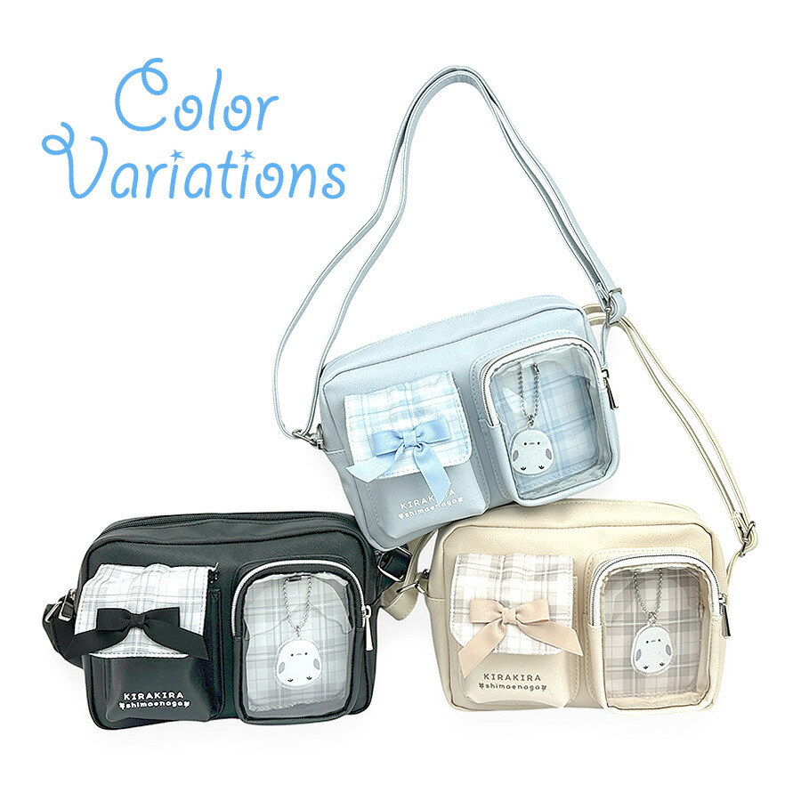 [イメージ・関連] おしゃれ オシャレ お洒落 かわいい 可愛い キュート 使いやすい 便利 人気 売れ筋 おすすめ 流行 カジュアル / ブラック パープル 軽量 軽い ファスナー開閉 B6対応 500mlペットボトル収納可能 チャーム マスコット付き キーホルダー付き シマエナガ リボン クリアポケット 窓 推し活 推し事 韓国風 韓国っぽ ラッピング無料 ラッピング袋無料 ラッピング対応 ブラック黒 クロ 水色 ライトブルー ベージュ チェック ファスナー開閉