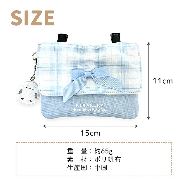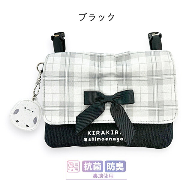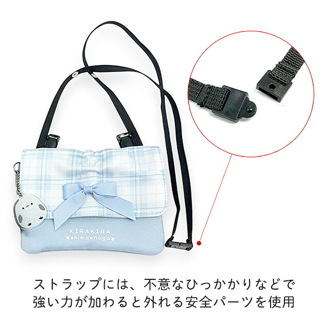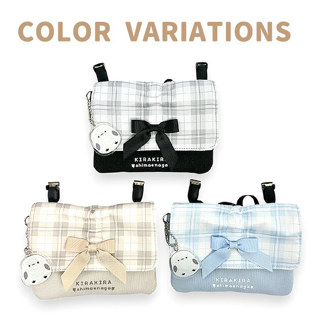 チェック柄とリボン、そして可愛らしいシマエナガのチャームがポイントの、多機能2wayポケットポーチ。
