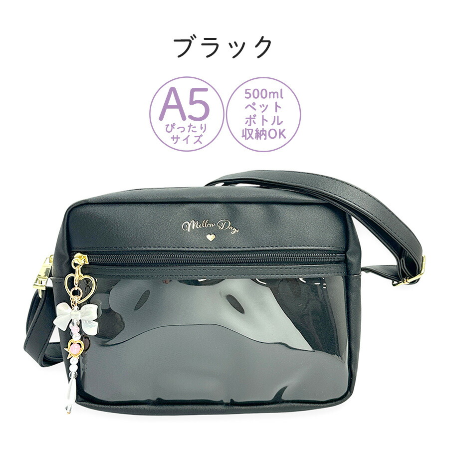 [イメージ・関連] おしゃれ オシャレ お洒落 かわいい 可愛い キュート 使いやすい 便利 人気 売れ筋 おすすめ 流行 カジュアル / ブラック 黒 クロ パープル 紫 ライトブルー 水色 軽量 軽い ファスナー開閉 A5対応 500mlペットボトル収納可能 アクリルチャーム チャーム付き クリアポケット 推し活 推しごと オタ活 ヲタ活 キラキラ ラッピング無料 ラッピング袋無料 ラッピング対応