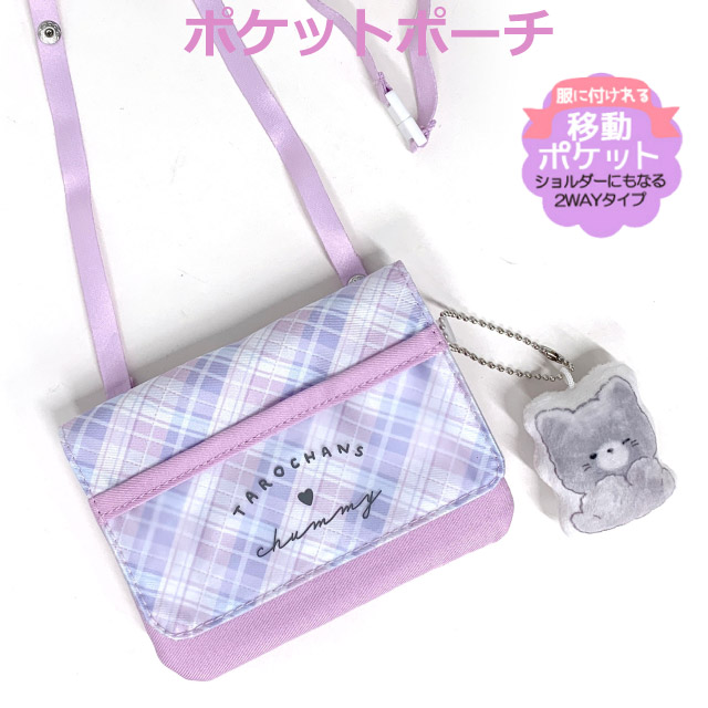 ポケットポーチ 小学校 移動ポケット おしゃれ クリップ ショルダー付き 子供用 女の子 ネコ 129969