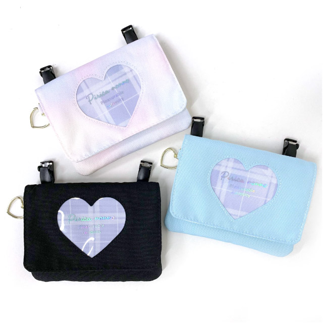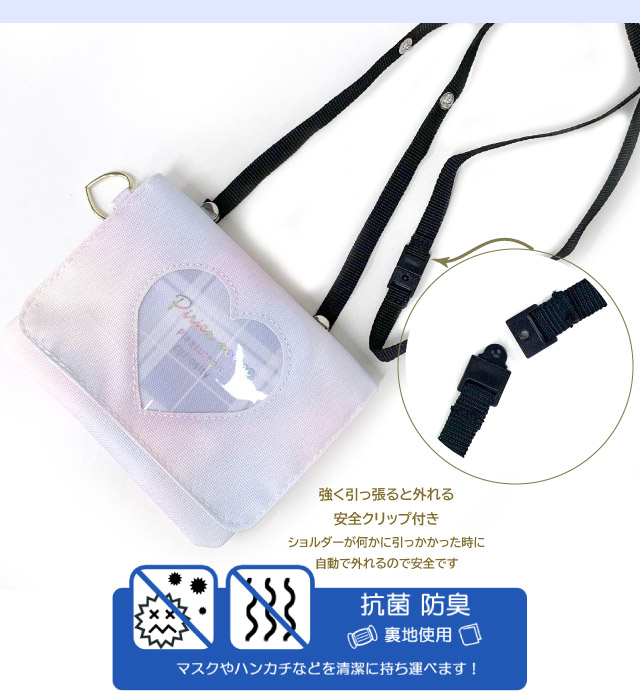 小学生 ポケット ポーチ 女の子 Pirica nonno グラデチェック フラットショルダー hbe-531 抗菌 防臭 移動ポケット ポシェット キッズ ハート ショルダー付き かわいい クリップ マスク 入れ ハンカチ ティッシュ 高学年 低学年 ポーチ 移動 黒 ブラック 紫 ひも付き 移動バッグ 移動バック