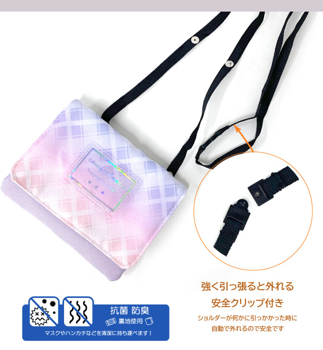 ショルダー 移動ポケット ファスナー Pirica nonno メルトチェック フラットショルダー mae-531 抗菌 防 ポケットポーチ 小学生 女の子 安全 ポシェット キッズ 女子 高学年 低学年 かわいい マスク入れ シンプル ティッシュケース おしゃれ 入学 マルチポケット 入学グッズ マルチポケット 移動バッグ 移動バック