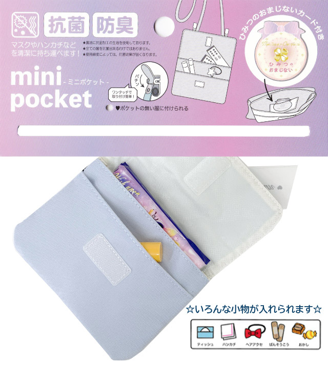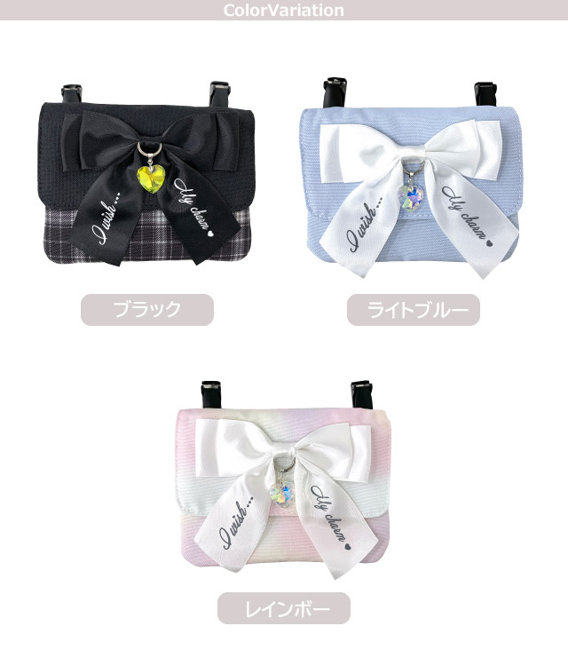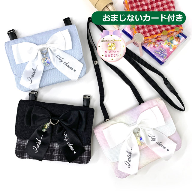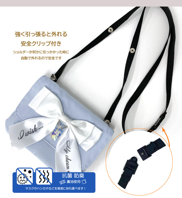 移動ポケット 女の子 ショルダー Pirica nonno ウィッシュリボン フラットショルダー おまじないカード付き mew-531 抗菌 防臭 リボン ポケットポーチ クリップ ポシェット キッズ 小学生 高学年 低学年 かわいい ポケット ポーチ ハンカチ ポケットのない 入学 女子 水色