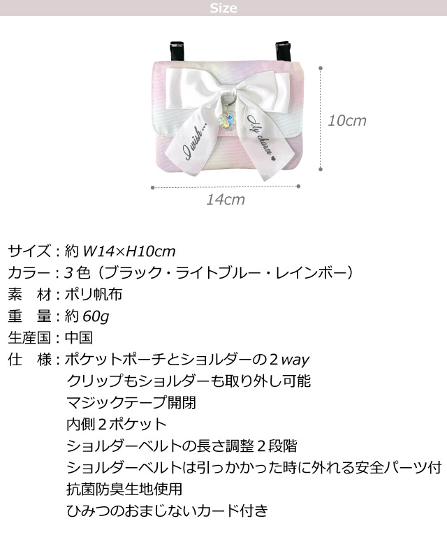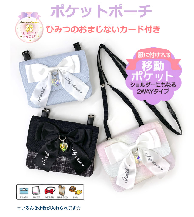 移動ポケット ショルダー おしゃれ 2way ポケットポーチ 子供 小学生 女子 Pirica nonno ウィッシュリボン フラットショルダー おまじないカード付き mew-531