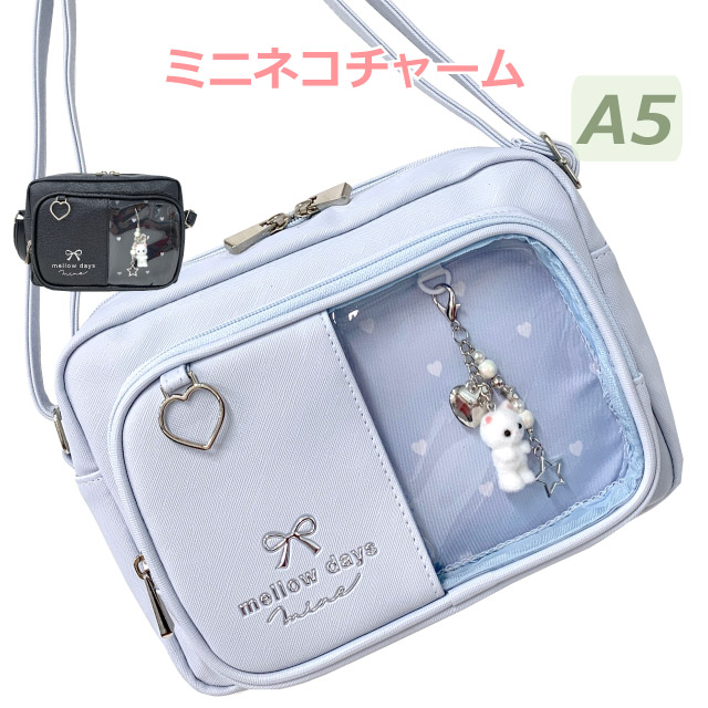 【ラッピング袋無料】ショルダーバッグ リボン キッズ 女の子 ネコ ハート 子供 可愛い 女子 小学生 ポシェット チャーム ブラック かわいい 合皮 肩掛け ファスナー おしゃれ 水色 黒 ねこ 猫 推し活バッグ 高学年 誕生日 ショルダーバック おでかけ 斜めがけ バッグ ヨコ型ショルダー mph-511