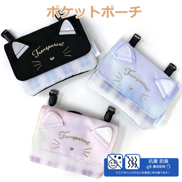 移動ポケット ポケットポーチ 女の子 マルチポケット ネコ シャカシャカ キラキラ リボン ポケット ポーチ クリップ ショルダー ポシェット ティッシュ入れ キッズ 小学生 女子 ジュニア 水色 紫 黒 抗菌 防臭 入園グッズ 入学グッズ 付けポケット 外付けポケット mpm-531 入学 マルチポケット 移動バッグ 移動バック