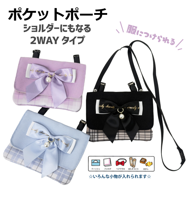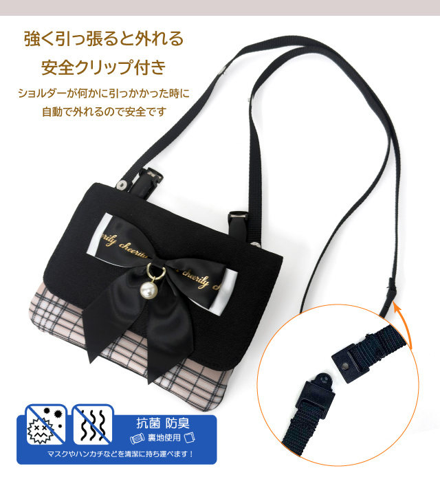移動ポケット ショルダー おしゃれ 2way ポケットポーチ リボン 子供 入学グッズ 抗菌 防臭 mqc-533