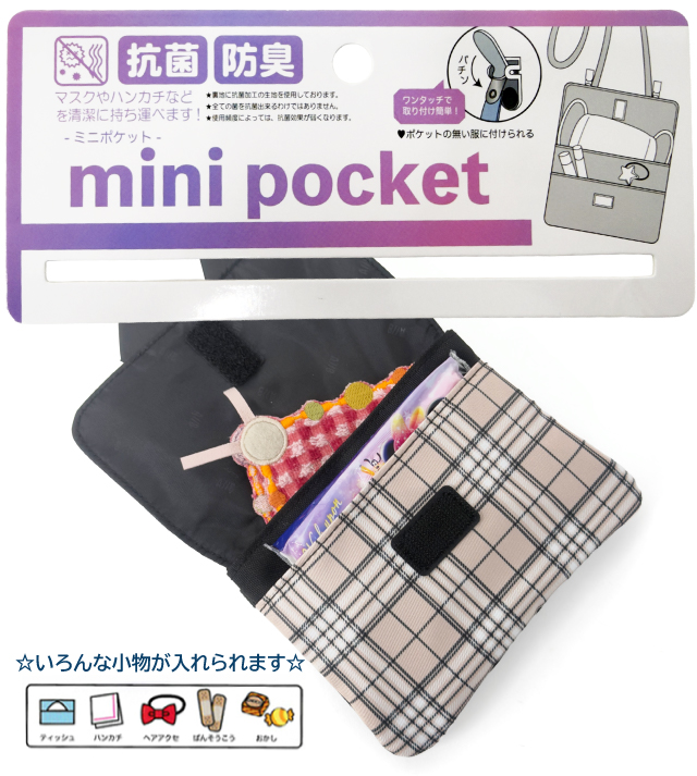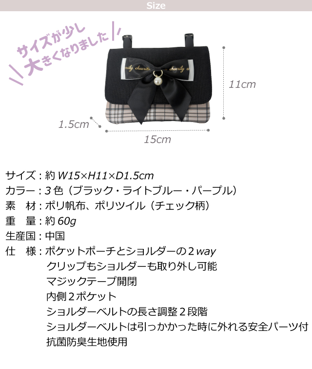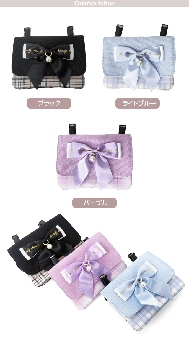 ポケットポーチ 女の子 移動ポケット マルチポケット リボン パール チェック柄 ポケット ポーチ クリップ 付き ショルダー ポシェット ティッシュ入れ キッズ 小学生 高学年 低学年 女子 ジュニア 水色 紫 黒 抗菌 防臭 入園グッズ 入学グッズ 外付けポケット mqc-533