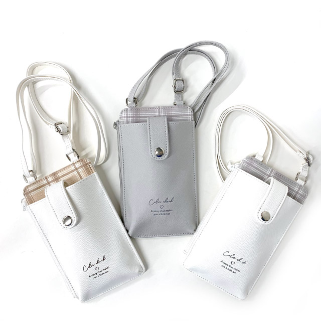 スマホショルダー ストラップ スマホポーチ 全機種 ポシェット レディース キッズ 女の子 Pirica nonno マイルドチェック スマポケショルダー wzw-510