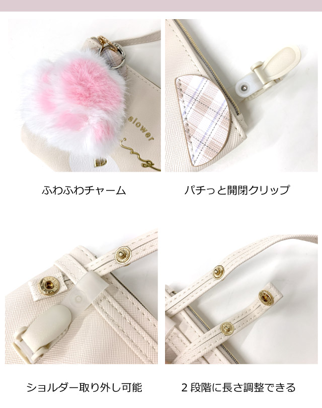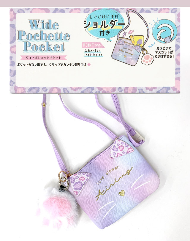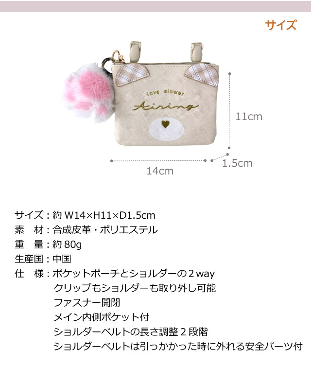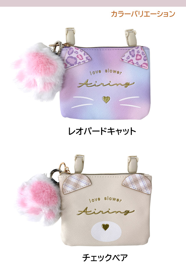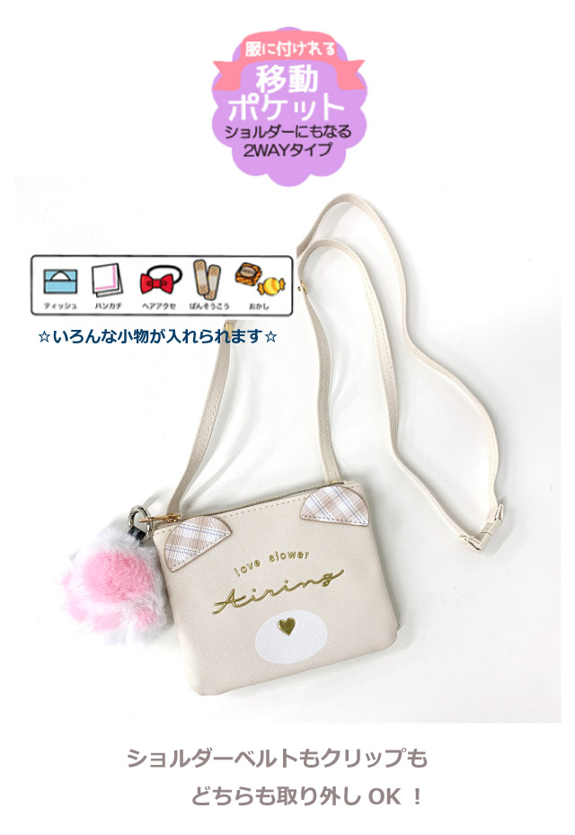 ポケットポーチ 小学校 移動ポケット おしゃれ クリップ ショルダー付き クリップ付き ポシェット ネコ クマ 75147