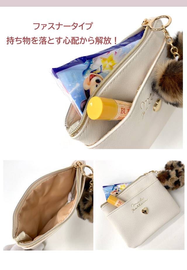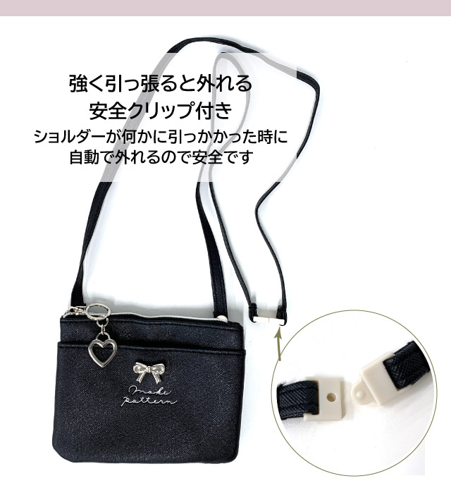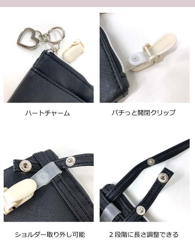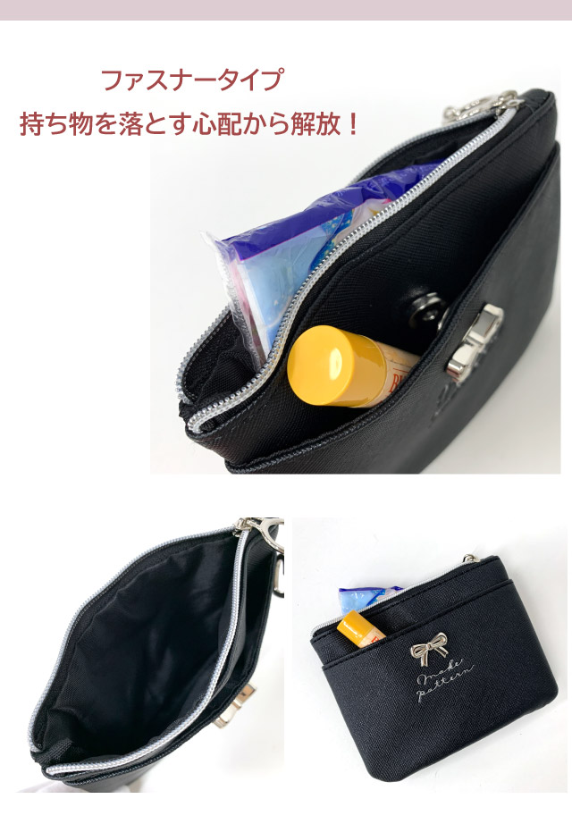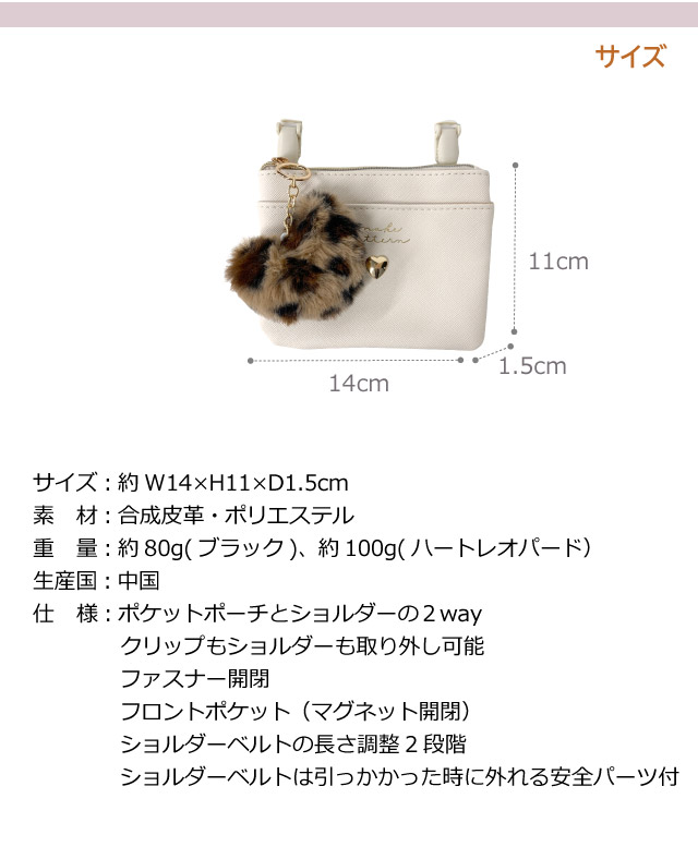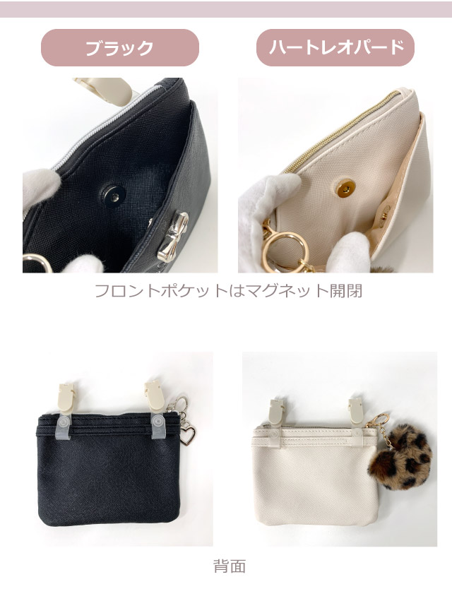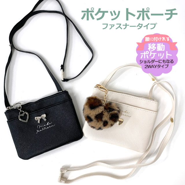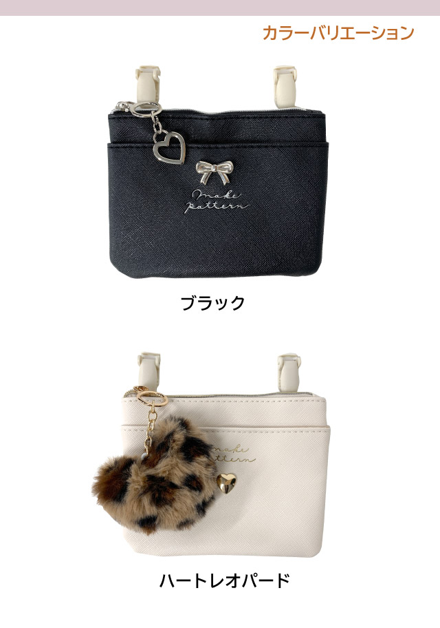 ポケットポーチ 小学校 移動ポケット おしゃれ クリップ ショルダー付き クリップ付き ポシェット リボン ハート ヒョウ柄 75150