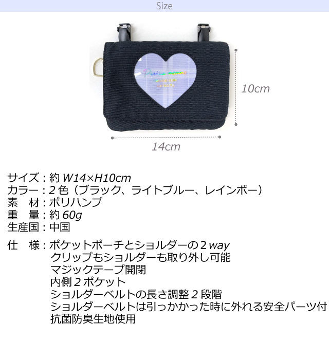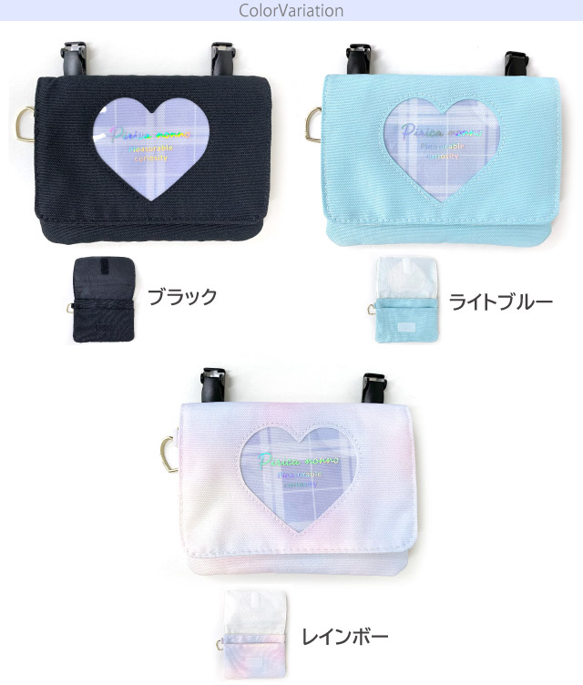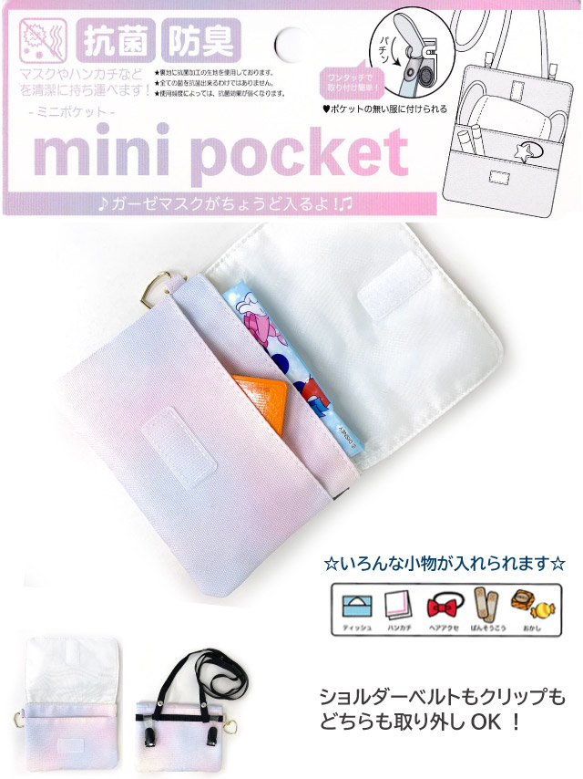 移動ポケット 女の子 ショルダー Pirica nonno グラデチェック フラットショルダー hbe-531 ポケットポーチ ポシェット キッズ 小学生 高学年 低学年 かわいい クリップ ポケット ポーチ 移動 マスク ハンカチ ポケットのない マスク入れ 入学 入園 女子 抗菌 防臭 黒 水色 マルチポケット 移動バッグ 移動バック