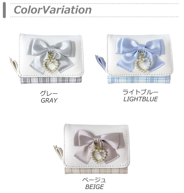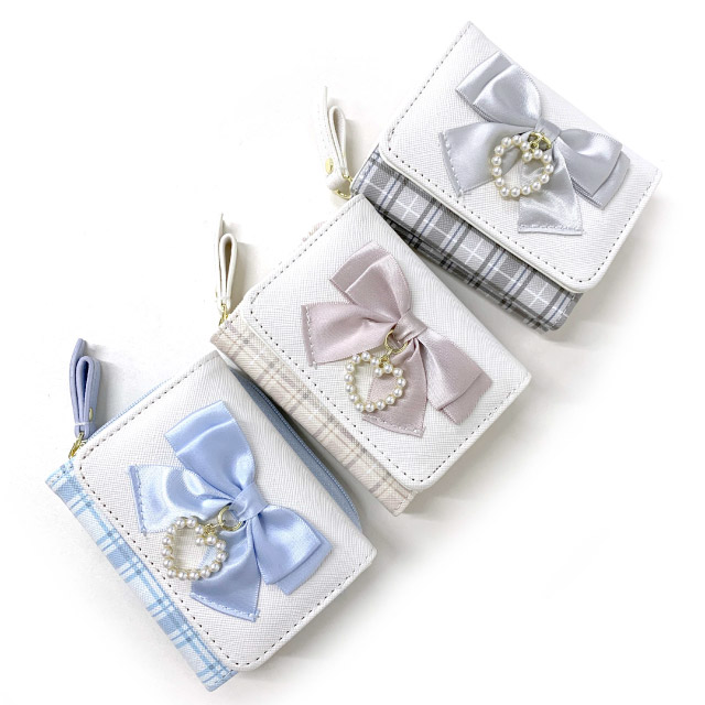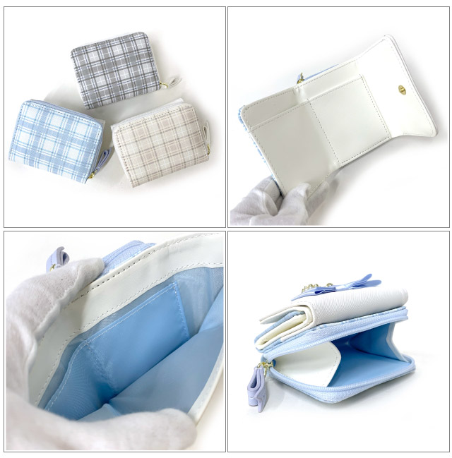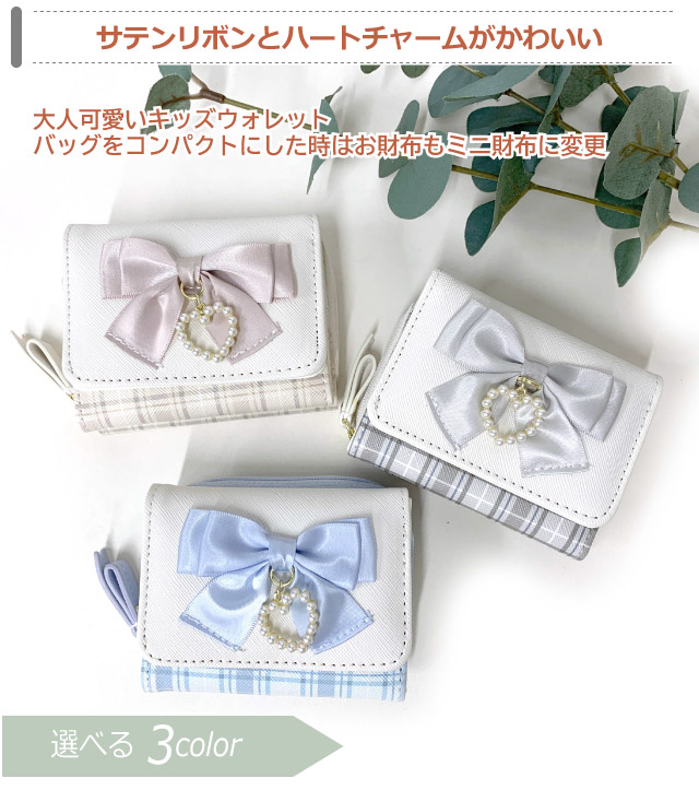 財布 キッズ 女子 三つ折り キッズ財布 女の子 子供 3つ折り財布 かわいい コンパクト りぼん 水色 Merry Crown リボンチェック ミニラウンド財布 mbr-102
