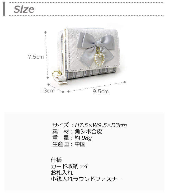 【ラッピング袋無料】キッズ 財布 女の子 Merry Crown リボンチェック ミニラウンド財布 mbr-102 子供 女子 小学生 中学生 ファスナー財布 かわいい ミニ財布 子供用 ウォレット 3つ折り財布 修学旅行 人気 小さい財布 コンパクト さいふ 三つ折り財布 誕生日プレゼント キッズ財布