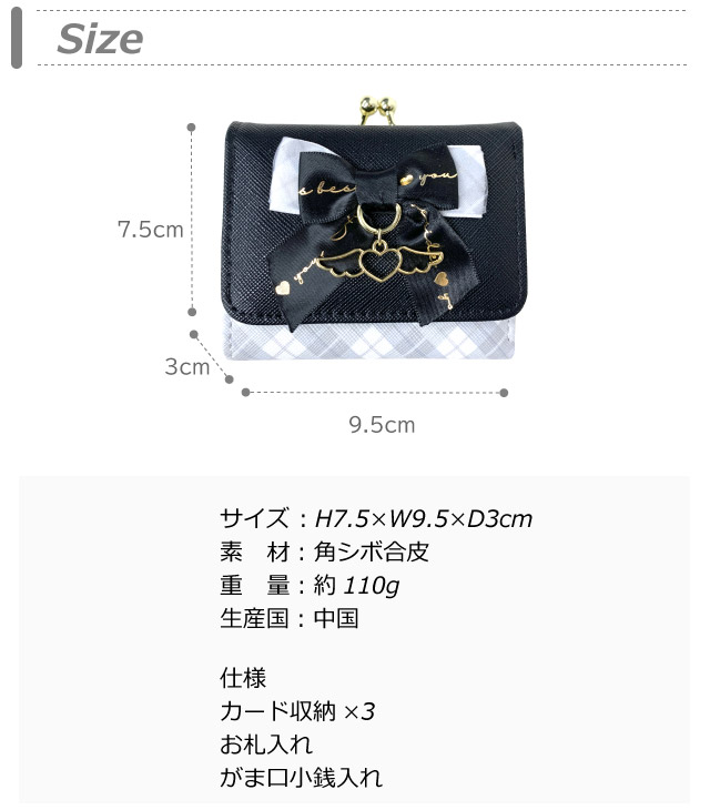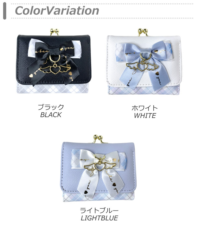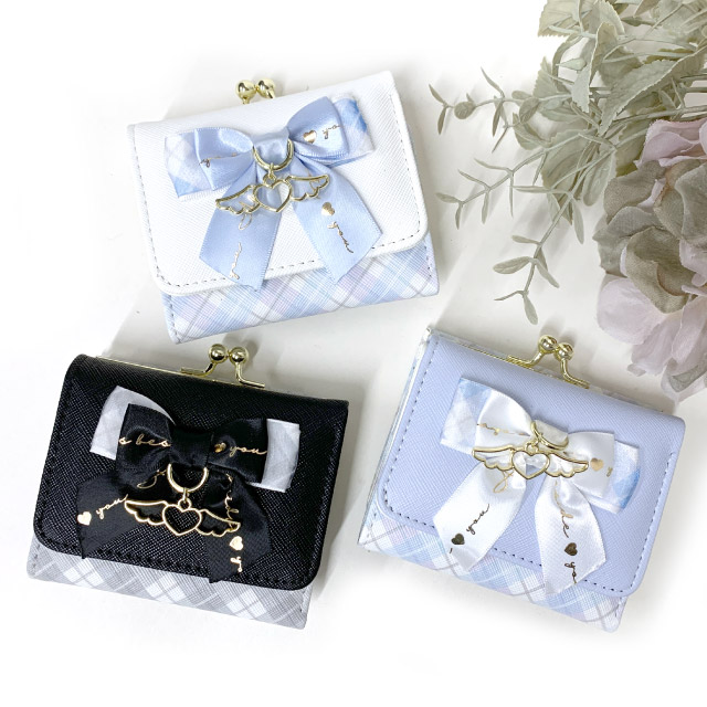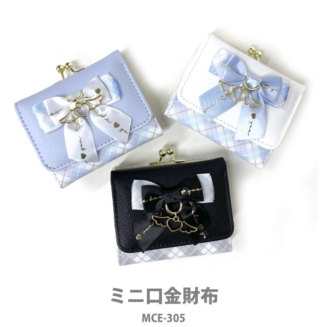 【ラッピング袋無料】財布 女の子 小学生 Merry Crown リボン天使 ミニ口金財布 mce-305 キッズ ミニ財布 女の子 がま口財布 中学生 高校生 修学旅行 人気 三つ折り 小さい財布 かわいい コンパクト 折りたたみ お 財布 さいふ 三つ折り財布 黒 水色 白 使いやすい 3つ折り 天使 プレゼント 韓国