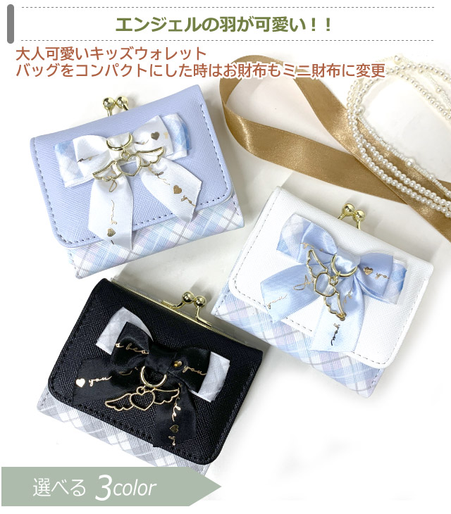 ミニ財布 財布 子供 こども 三つ折り財布 キッズ 女の子 女子 小学生 中学生 高校生 おしゃれ Merry Crown リボン天使 ミニ口金財布 mce-305