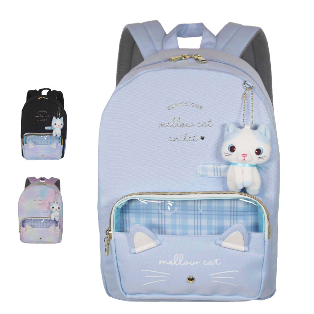 【その他】おしゃれ かわいい お洒落 おすすめ 人気 通販 可愛い ガール girl a4ファイル a4サイズ収納 ねこのキーホルダー付き 通学リュック パステルカラー パープル 紫 ラベンダー ロゴ 黒 ブラック水色 ブルー グラデーション ネコミミ 猫耳 レインボー ぬいぐるみ 虹色 ネコ 猫 グッズ 誕生日プレゼント クリスマスプレゼント 撥水 はっ水 サブバッグ 学童