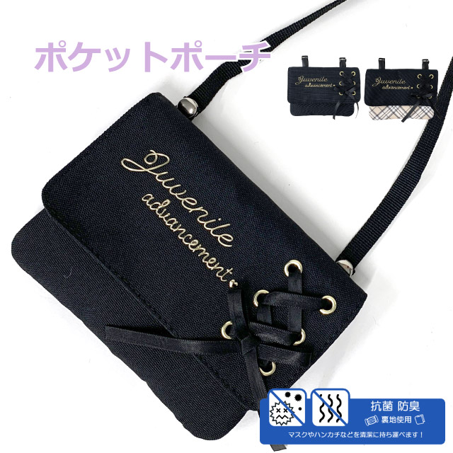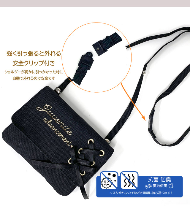 移動ポケット ショルダー ポシェット ショルダー付き 女の子 ポケットポーチ 付けポケット 外付けポケット クリップ付き クリップ 小学生 キッズ 子供 こども おしゃれ かわいい リボン 黒 シンプル 抗菌 防臭 小学校 子供用 ミニ 入学 フラットショルダー mdj-531 入学グッズ マルチポケット 移動バッグ 移動バック