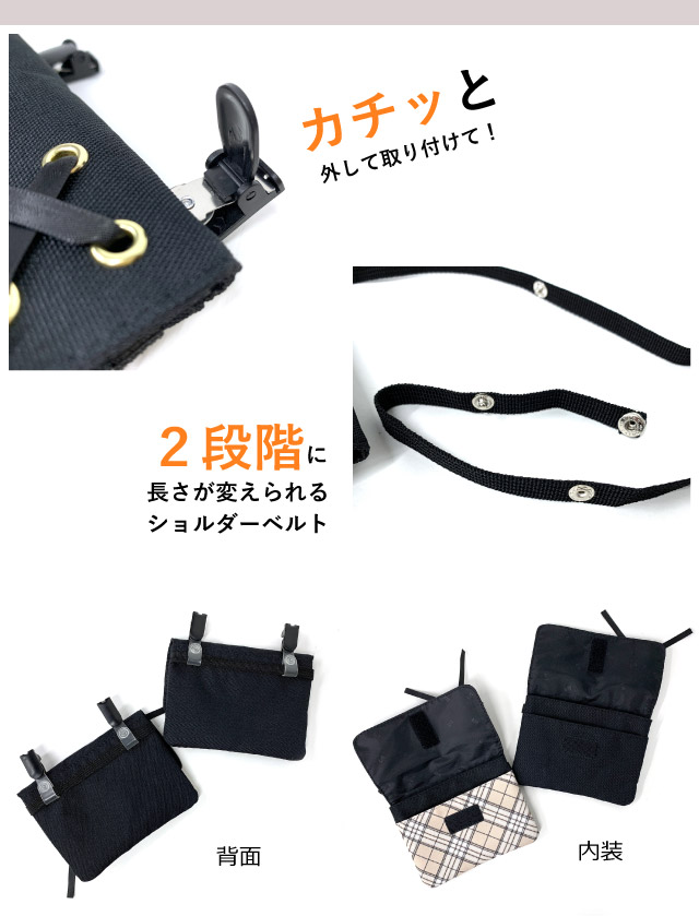 移動ポケット 小学校 ショルダー おしゃれ ポケットポーチ 子供 クリップ 外付けポケット 入学グッズ フラットショルダー mdj-531 抗菌 防臭