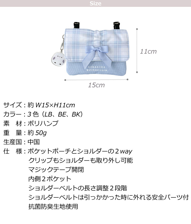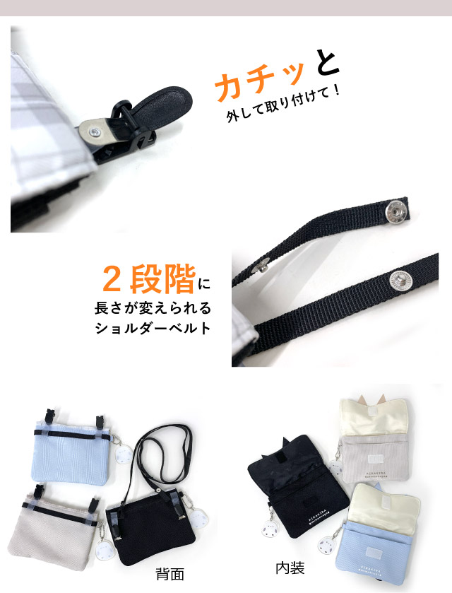 移動ポケット 女の子 クリップ 小学生 女子 ショルダー ポシェット ショルダー付き ポケットポーチ シマエナガ リボン 黒 水色 ベージュ 抗菌 防臭 クリップ留め 小学校 通学 入学グッズ 幼稚園 通園 マルチポケット 学校 子供 高学年 低学年 フラットショルダー mqf-533 マルチポケット 移動バッグ 移動バック