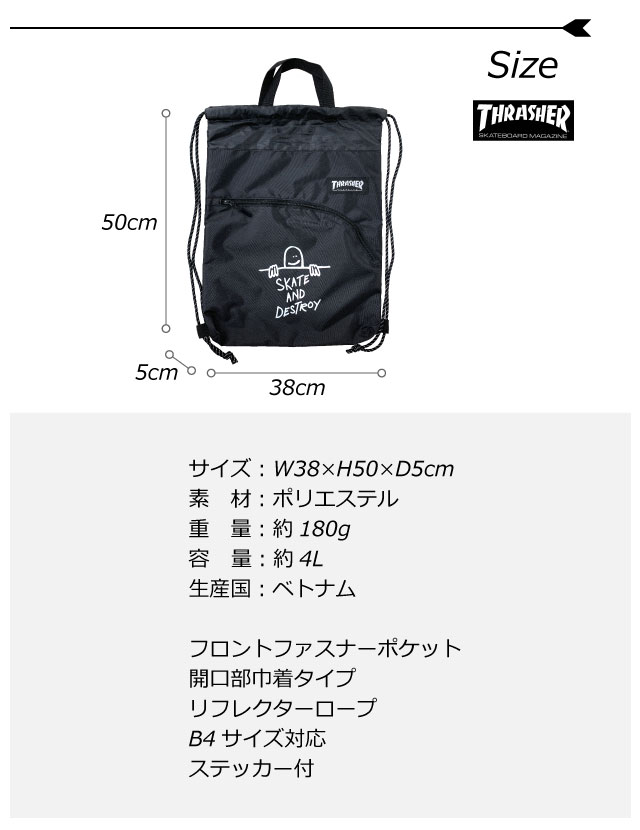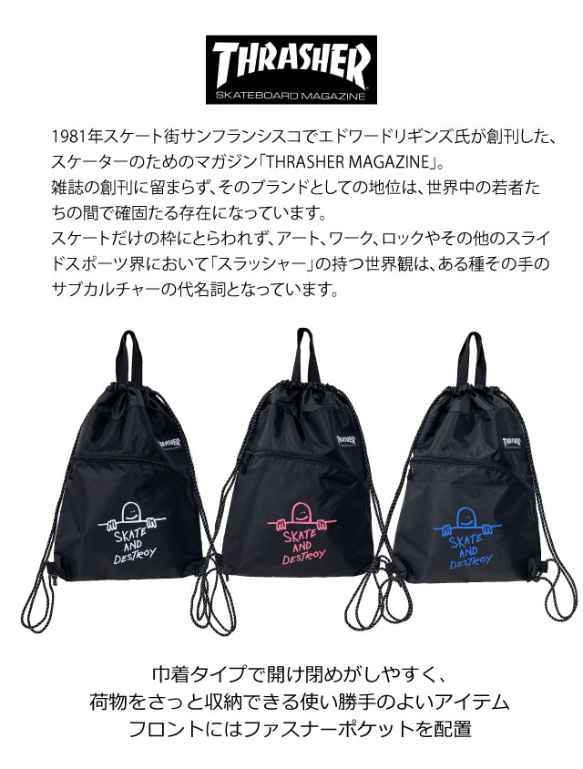 ナップサック おしゃれ 高校生 女の子 メンズ オシャレ ナップザック 中学生 男の子 レディース ジムサック ジムバッグ サブバッグ プールバッグ 体操着入れ 小学生 女子 男子 ユニセックス ジムバック 大容量 軽量 大人 子供 中学校 高校 ナイロン THRASHER ゴンズ th-x