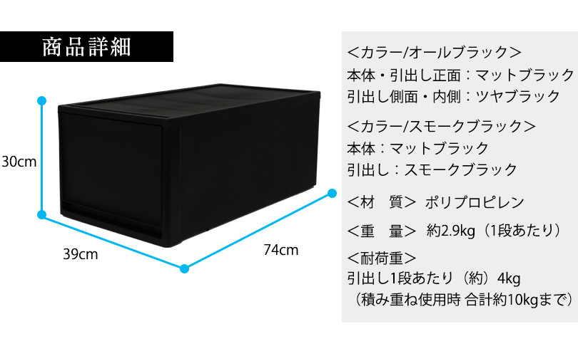| 商品名 | マットブラック 奥行74cm 高さ30cm 押入れ収納 1段チェスト |