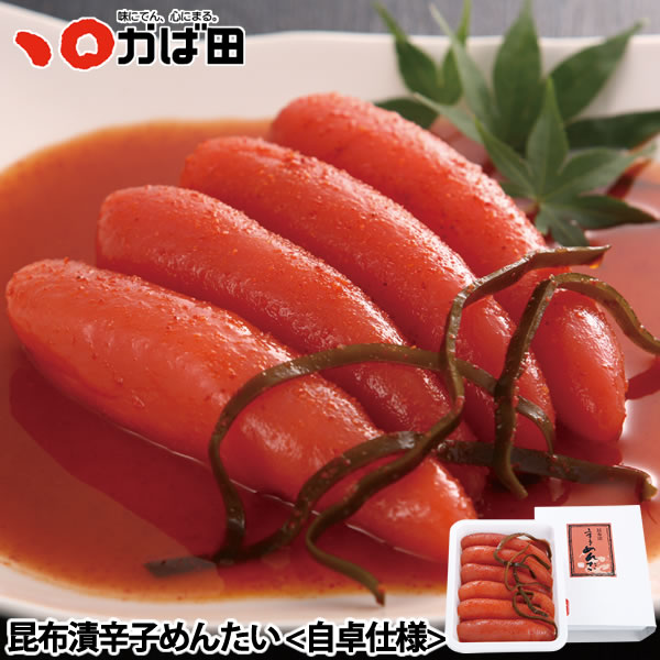 | 原材料 | すけとうだらの卵巣(米国産)、昆布、発酵調味料、かつお節エキス、清酒、還元水飴、食塩、唐辛子、たん白加水分解物/調味料(アミノ酸等)、酒精、ソルビット、トレハロース、酸化防止剤(V.C)、増粘剤(キサンタン)、着色料(黄5、赤102、赤3)、pH調整剤、発色剤(亜硝酸Na)、酵素、(一部に大豆・ゼラチンを含む) |