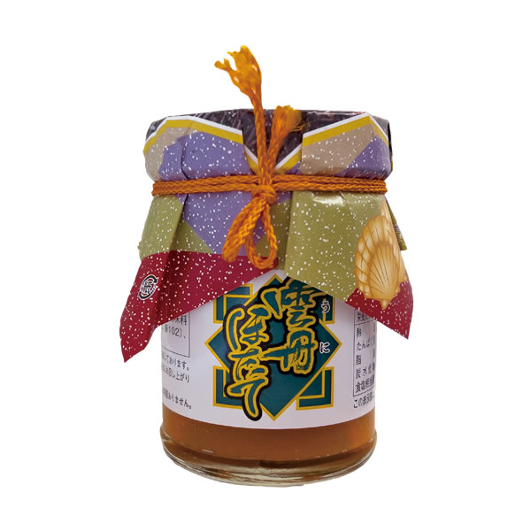 ほたて貝ひも(国産)、醤油、うに加工品(酒粕、砂糖、塩うに、その他)、砂糖、水飴、乾燥味付ほたて、みりん、醸造酢、酵母エキス、寒天/ソルビット、増粘多糖類、酒精、調味料(アミノ酸等)、着色料(黄4、黄5、赤102)、(一部に大豆・小麦を含む)