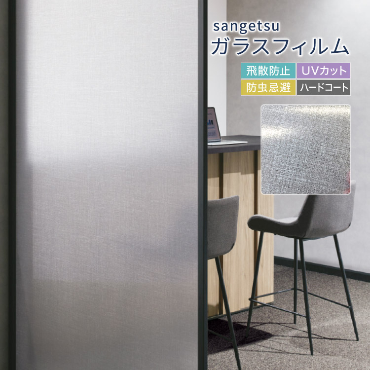 サンゲツ ガラスフィルム UVカット ファブリック ランカ チェック 織目調 格子柄 窓ガラス [1m以上10cm単位] GF1869