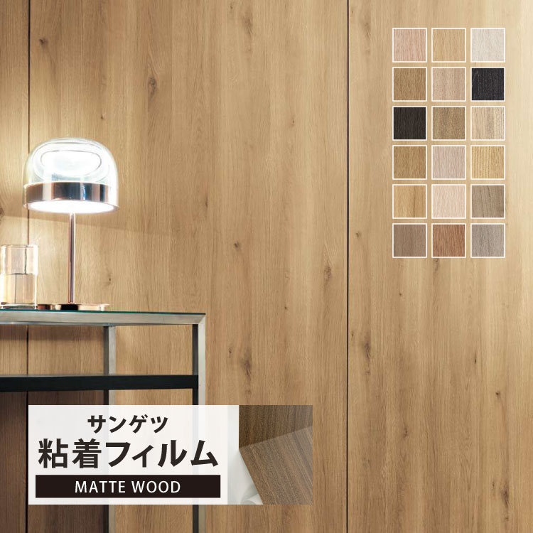 不燃仕上げを求められる壁面や金属下地部分のほか、柱やドアにも使用できる粘着剤付化粧フィルム。表面にマットコーティングを施したツヤの無い木目シリーズです。