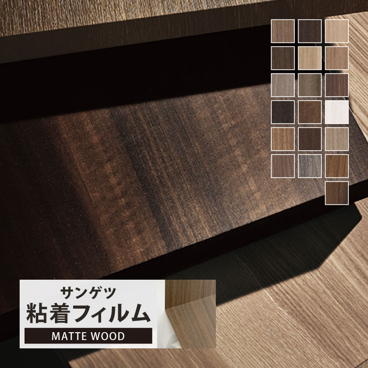 不燃仕上げを求められる壁面や金属下地部分のほか、柱やドアにも使用できる粘着剤付化粧フィルム。表面にマットコーティングを施したツヤの無い木目シリーズです。