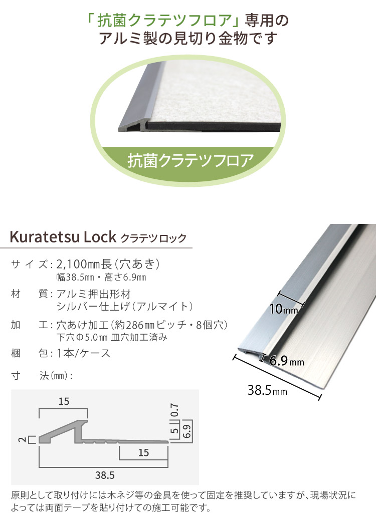 見切り用金物 Kuratetsu Lock 抗菌クラテツフロア用 見切材 金物見切り 210cm アルミ製 シルバー 4.5mm厚フロアタイル用 [1本単位]