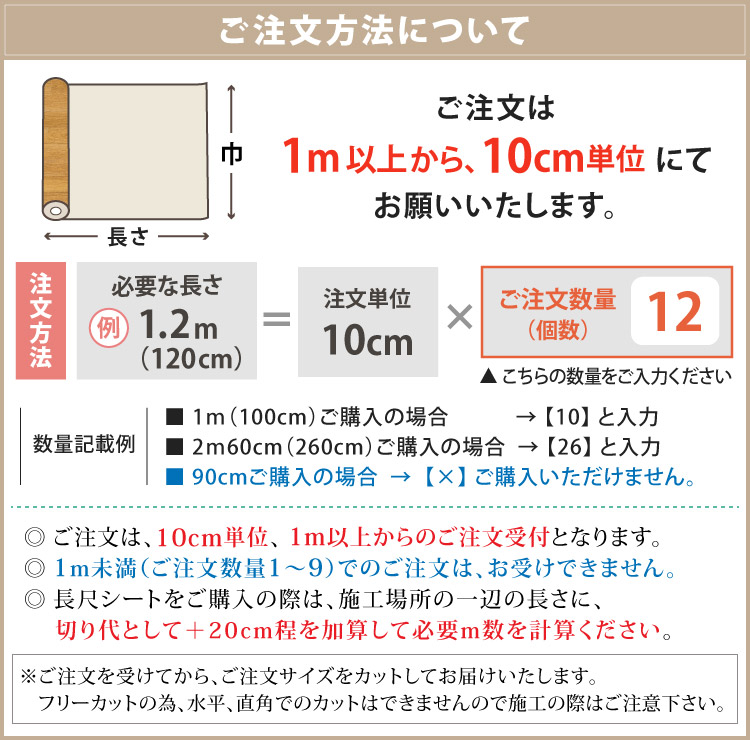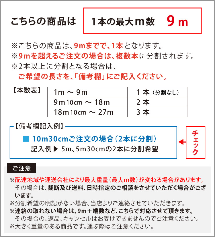 1m以上10cm単位(切売り)でのご購入となります。
