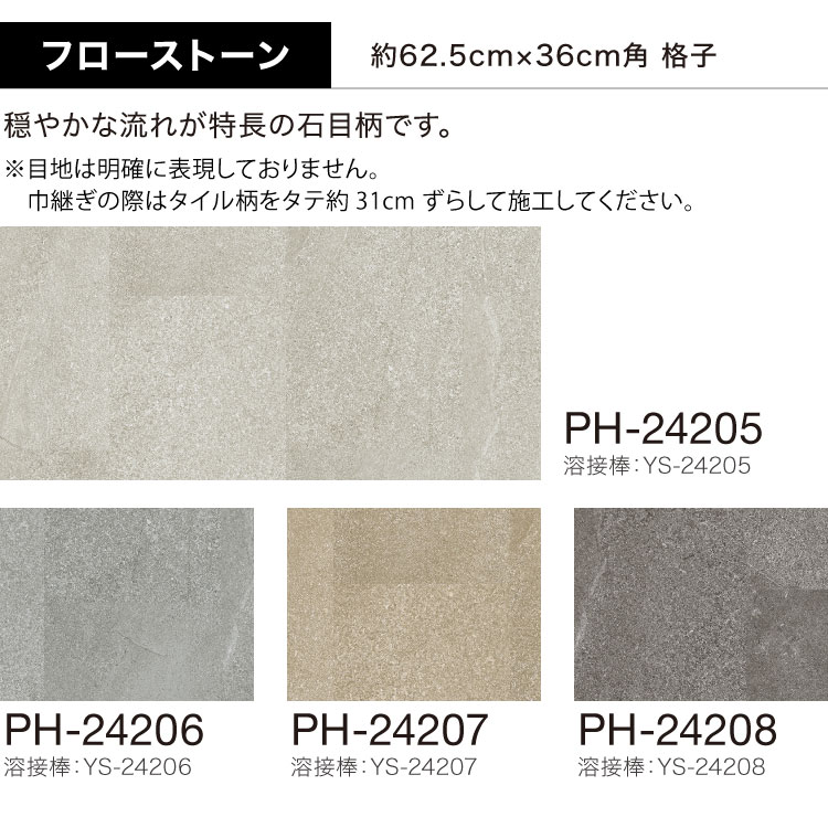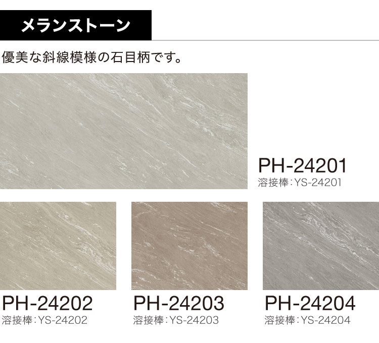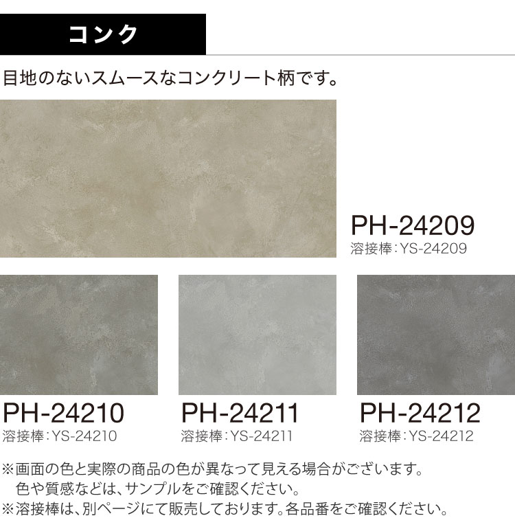 ●床材の色に合わせた溶接棒があります(熱溶接のために接着部分と床材に光沢の差が生じることがあります)。