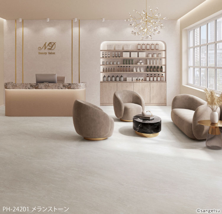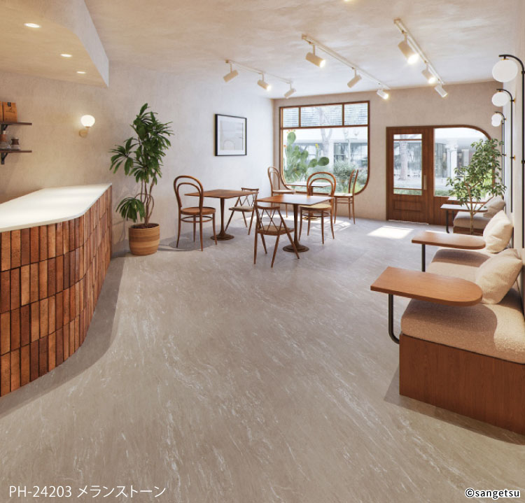 サンゲツ 長尺シート Sフロア エスリューム・リアル 180cm巾 2mm厚 ノンワックス 抗菌 石目調 [1m以上10cm単位 切売り]