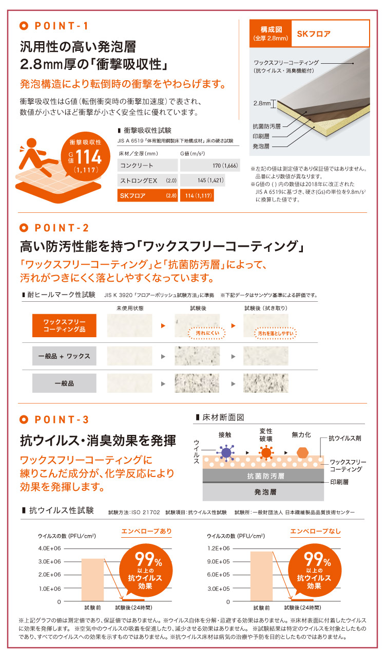 医療・福祉施設向けの2.8mm厚発泡複層シート。
