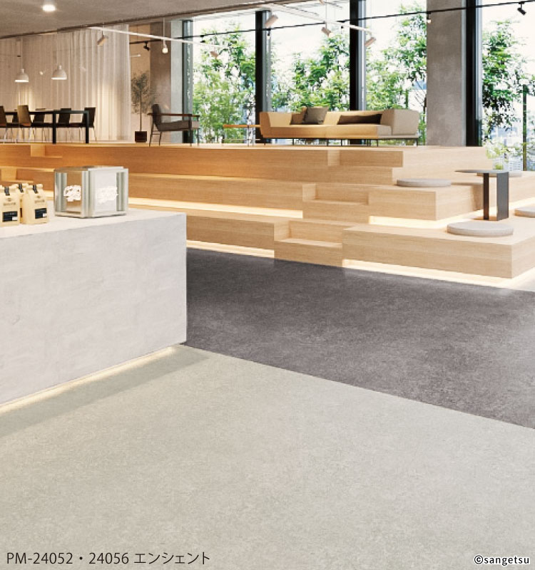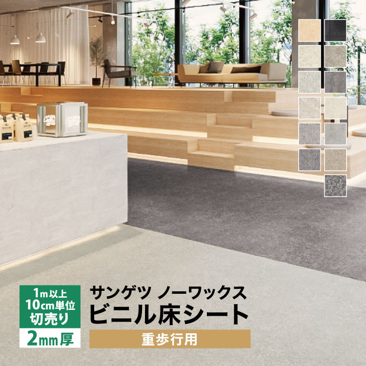 サンゲツ 長尺シート Sフロア ストロング 182cm巾 2mm厚 ノーワックス 重歩行用 複層シート 抗菌 石目調 日本製 [1m以上10cm単位 切売]