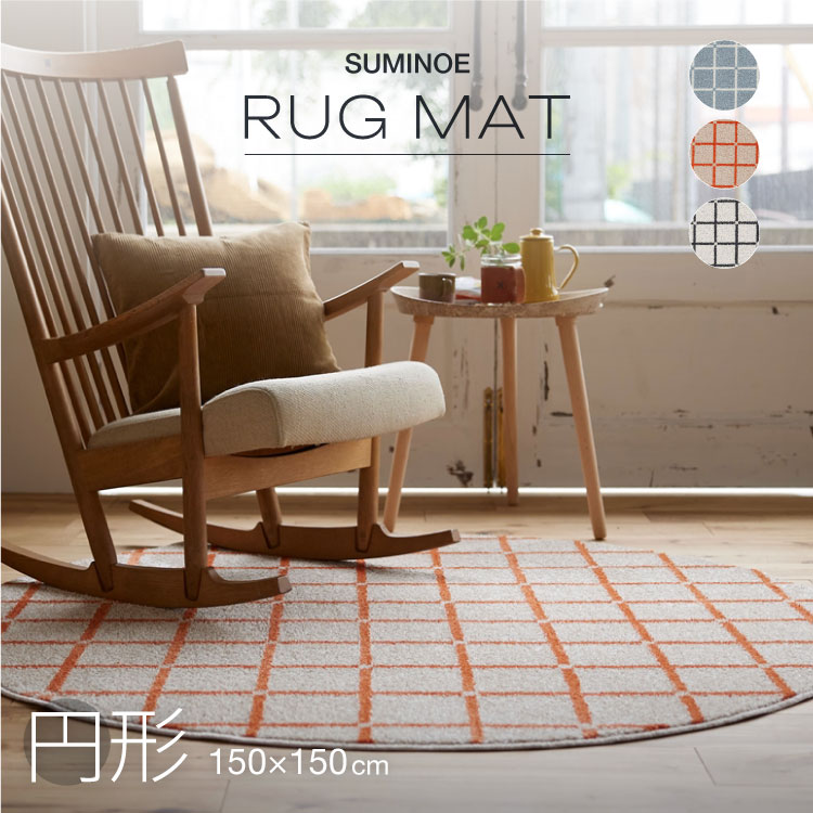 スミノエ ラグ Mオセロ 150×150cm(正円) 約 1.5畳 ラグマット ブルー オレンジ ホワイト 一人暮らし のリビングにおすすめ!コンパクト 国産